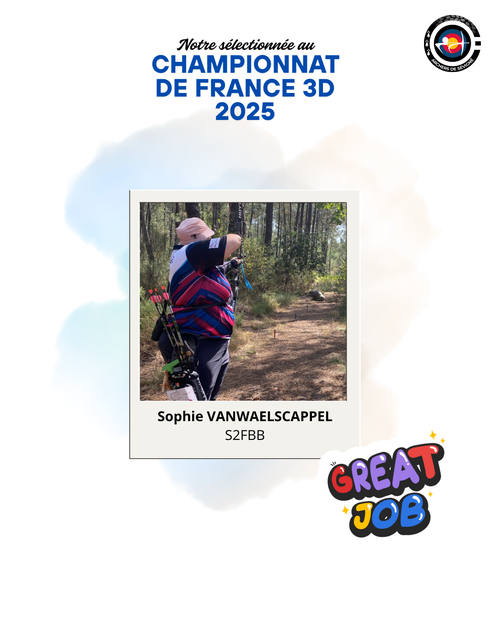 Sophie V était notre seule représentante présente au Championnat de France 3D qui se déroulait à Boigny-sur-Bionne et était organisé par le CD45 avec le support de 4 clubs.