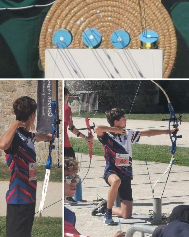Nos archers ont eu la surprise de faire exactement les mêmes boucles de duels que la veille pour les matchs de poules (mêmes cibles dans le même ordre). Ils ont même eu des adversaires en commun, mais pas sur la même boucle 😊.